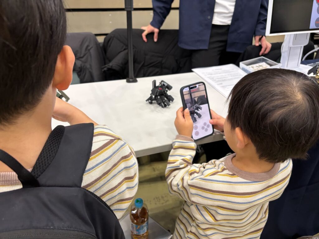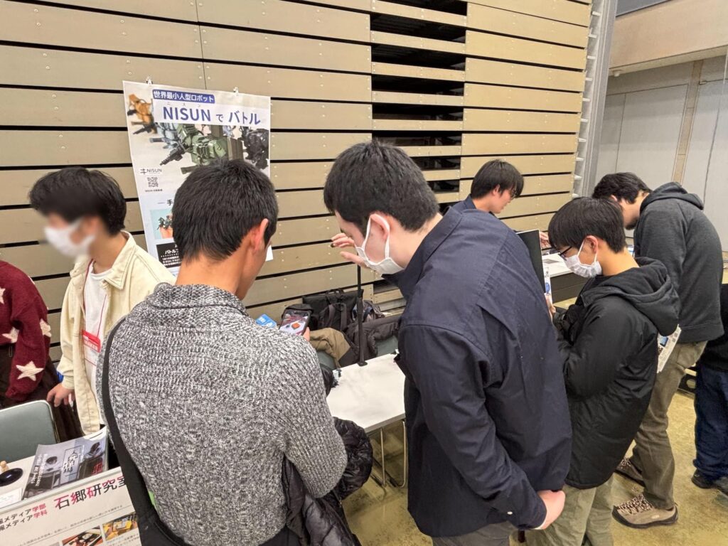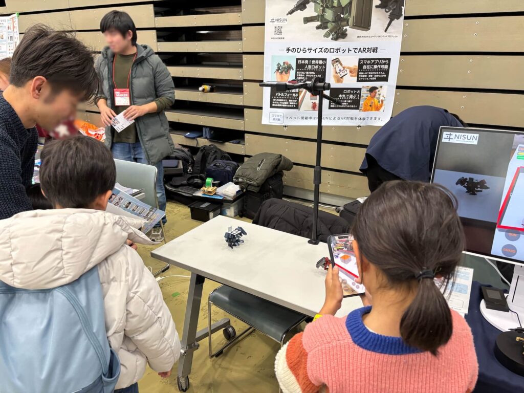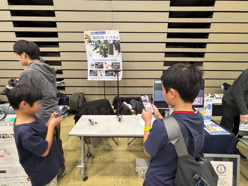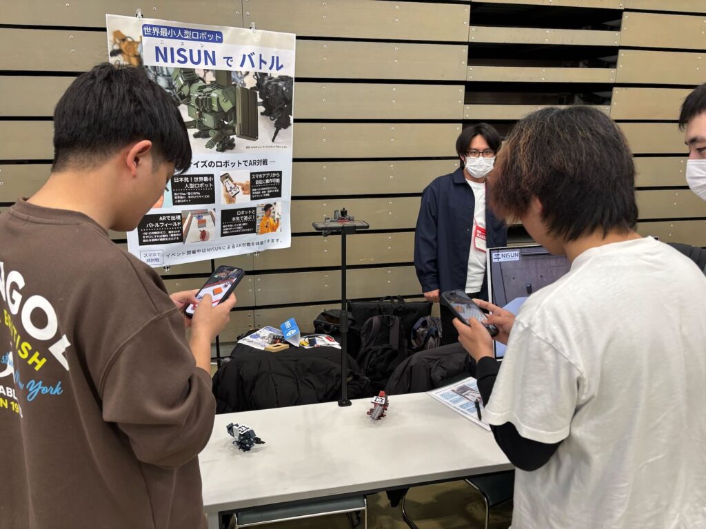 NISUNの展示やAR対戦システムの体験を通して、多くの方と直接お話しすることができました。特に印象的だったのは、大人だけでなく、子どもたちからも技術的な質問が多く寄せられたことです。ロボットの構造や動作の仕組みについて真剣に質問してくれる姿も多く、非常に質の高い交流の場となりました。